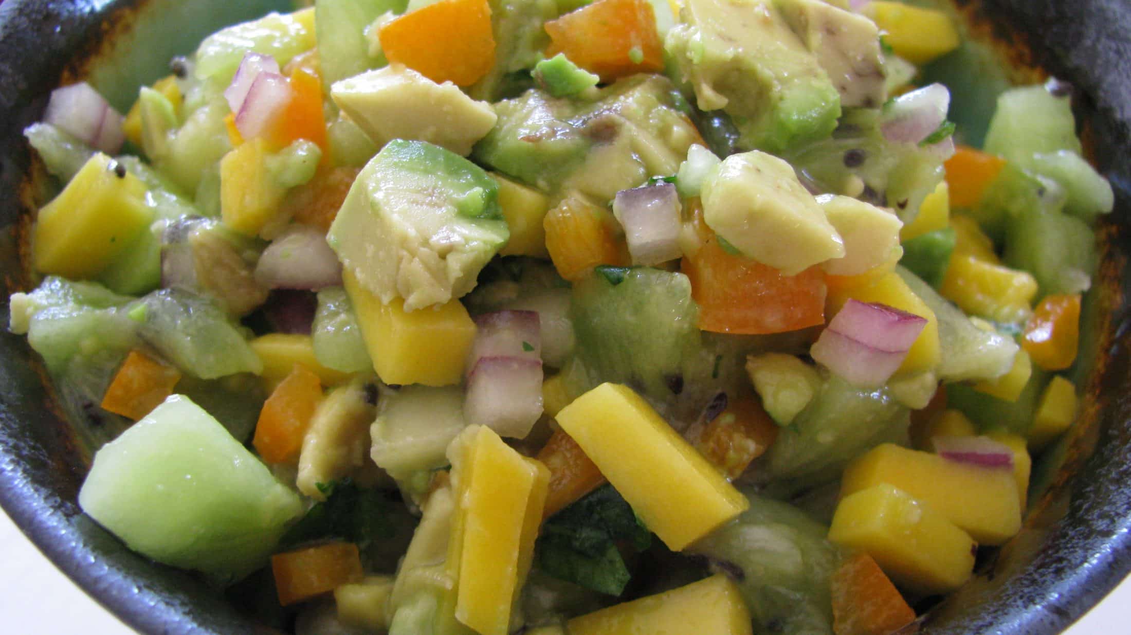 Are they really that expensive for you? Mangos are 75 cents each and avacados are a dollar each here… I thought that was a good price! Salsa looks great! I try to make salsa all the time, this is going into the books!