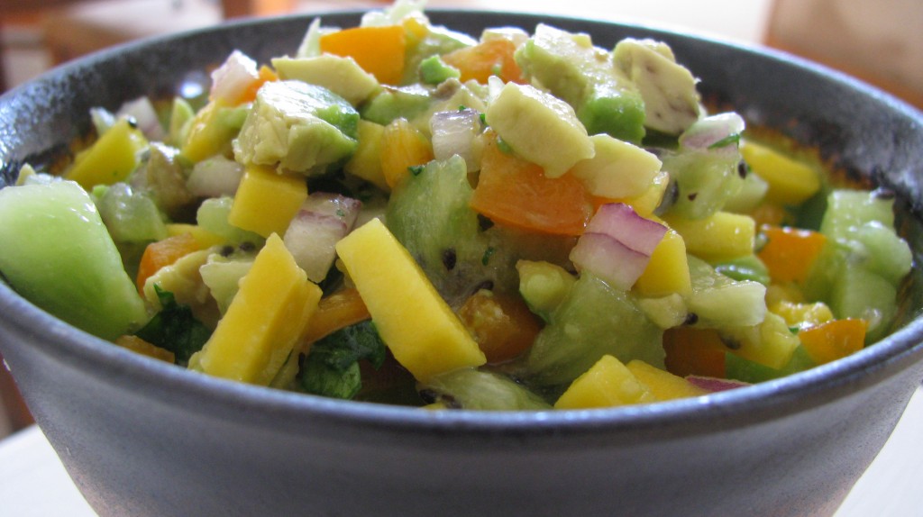 That salsa sounds not only delicious, but also is very pretty as well! Love the combo of avocade and fruit, YUM!