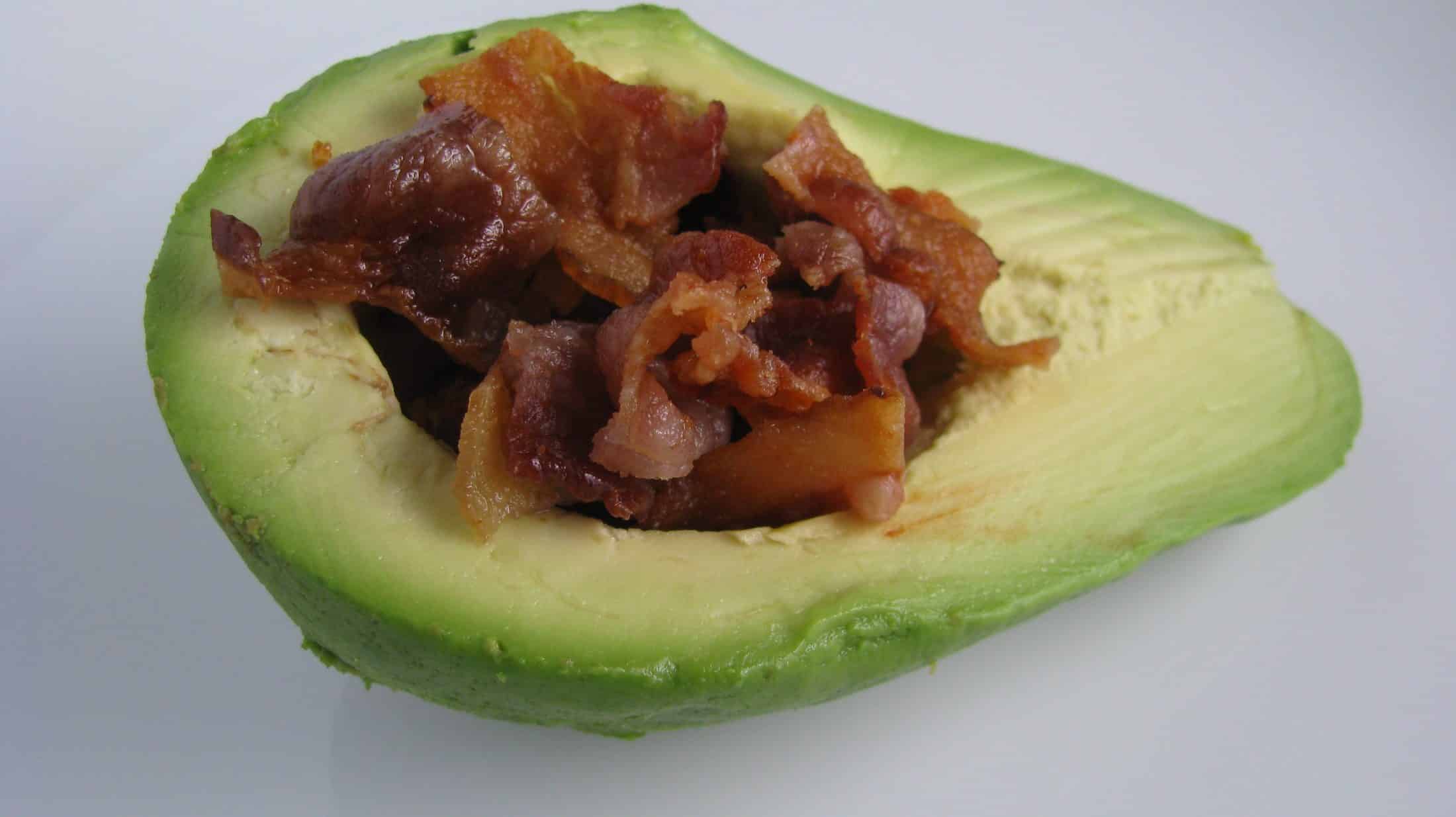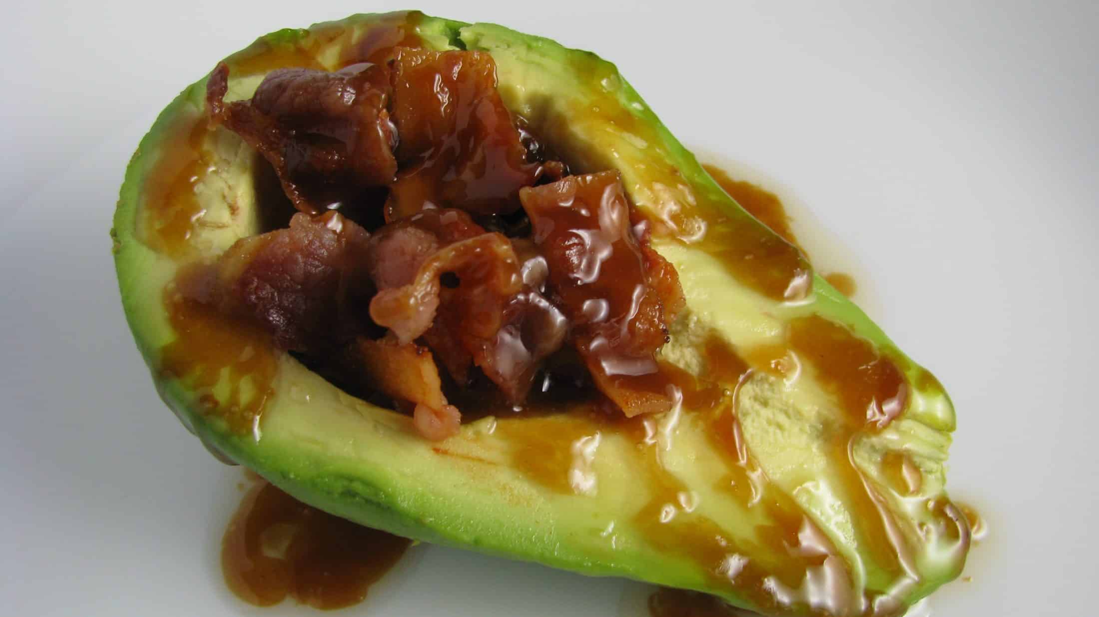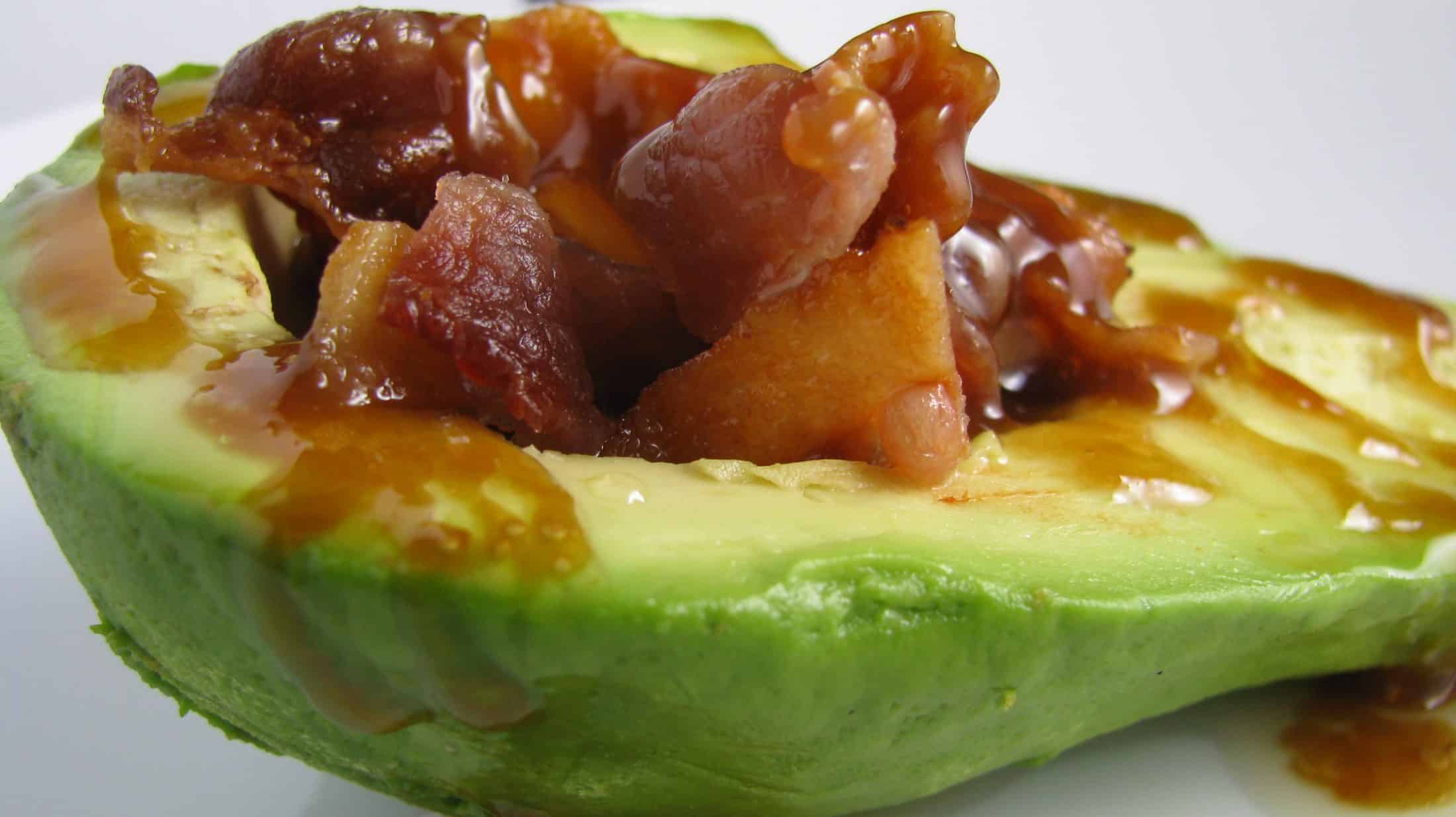 A smooth, buttery avocado topped with crispy, applewood smoked bacon.