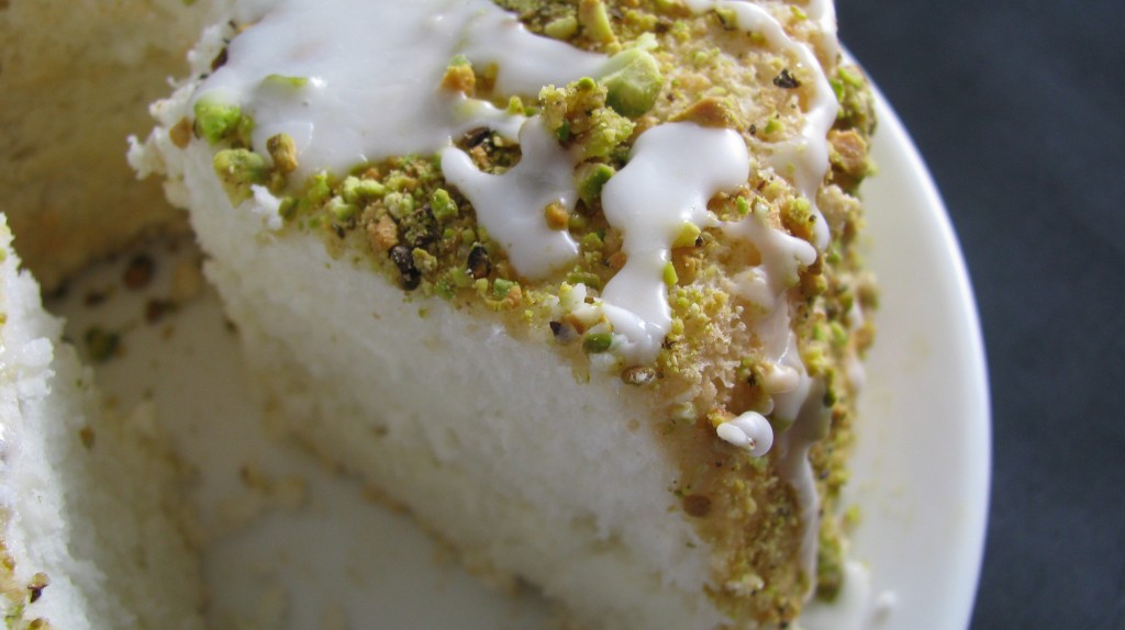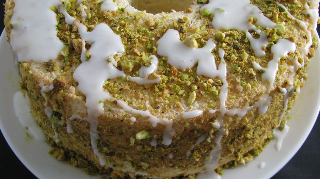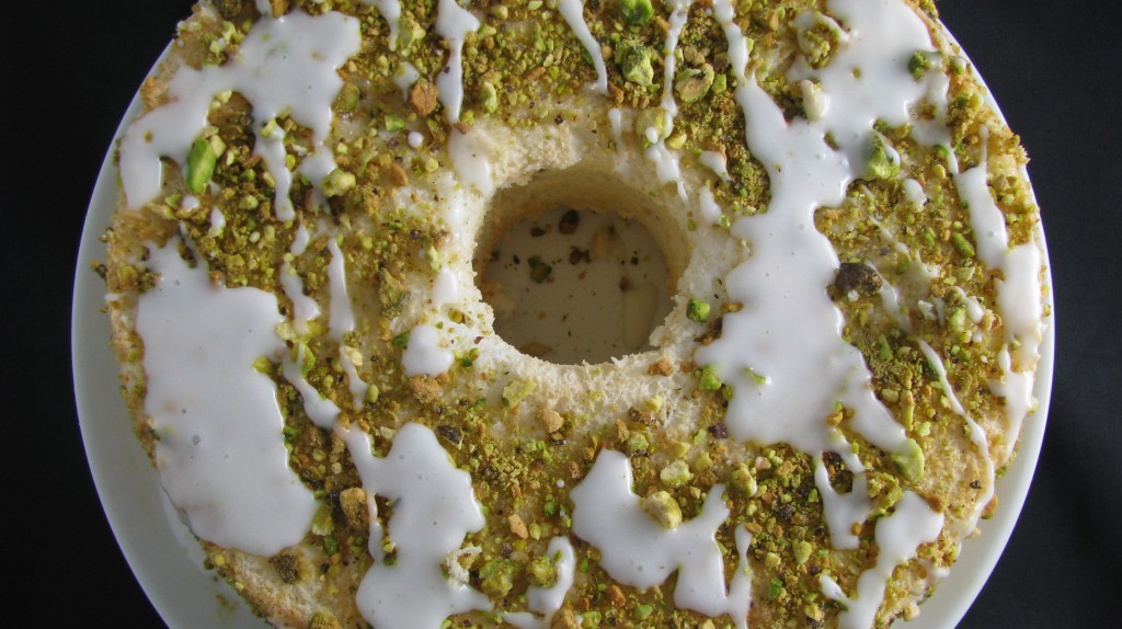 Lime Angel Food Cake with Pistachios and Lime Glaze