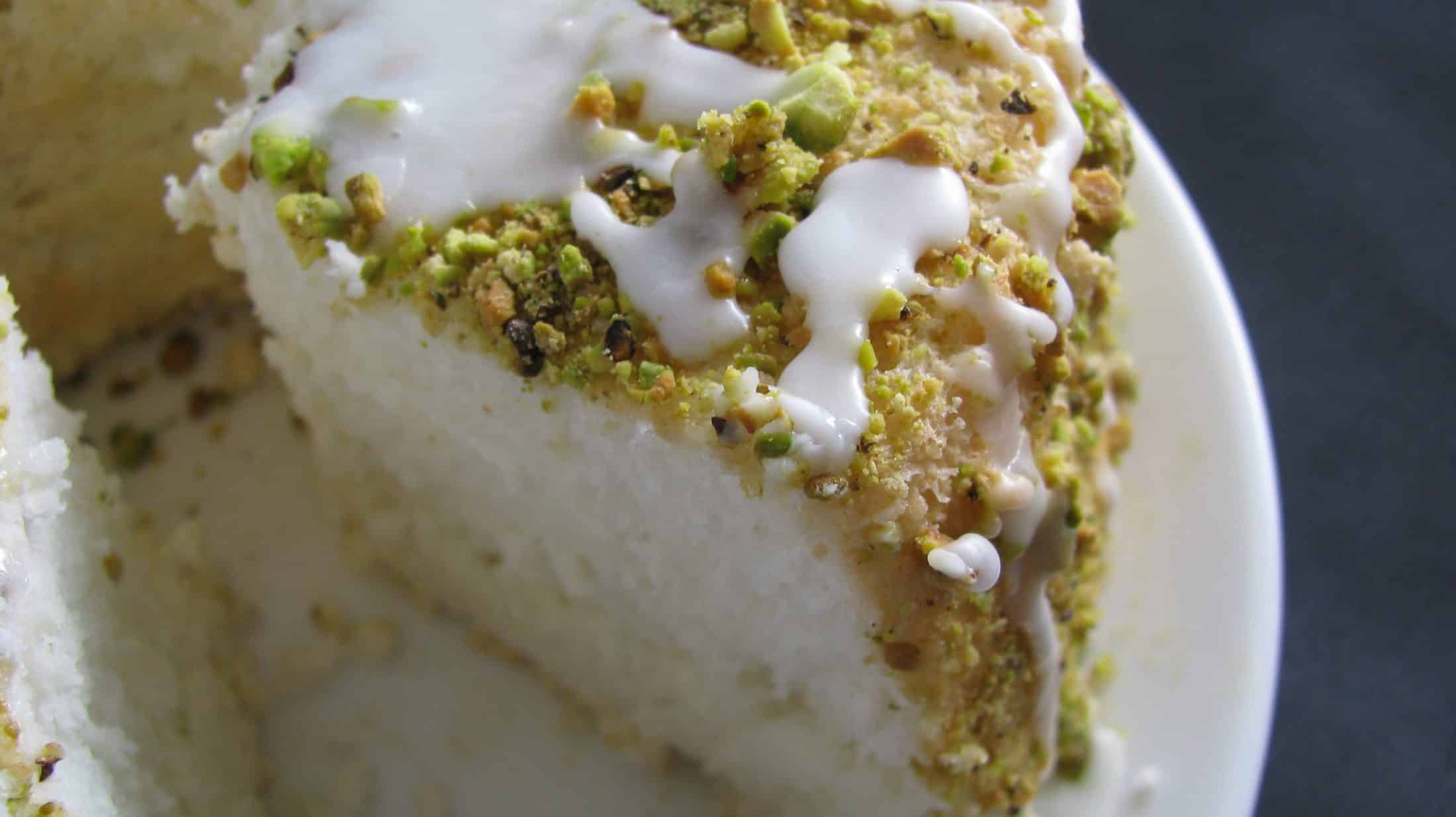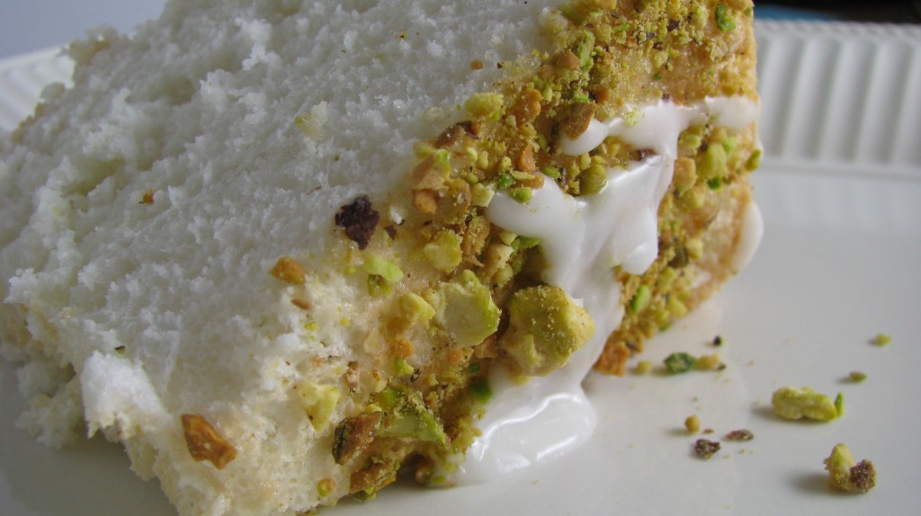 Angel food cake meets sweet, tart lime and salty, crunchy pistachios.