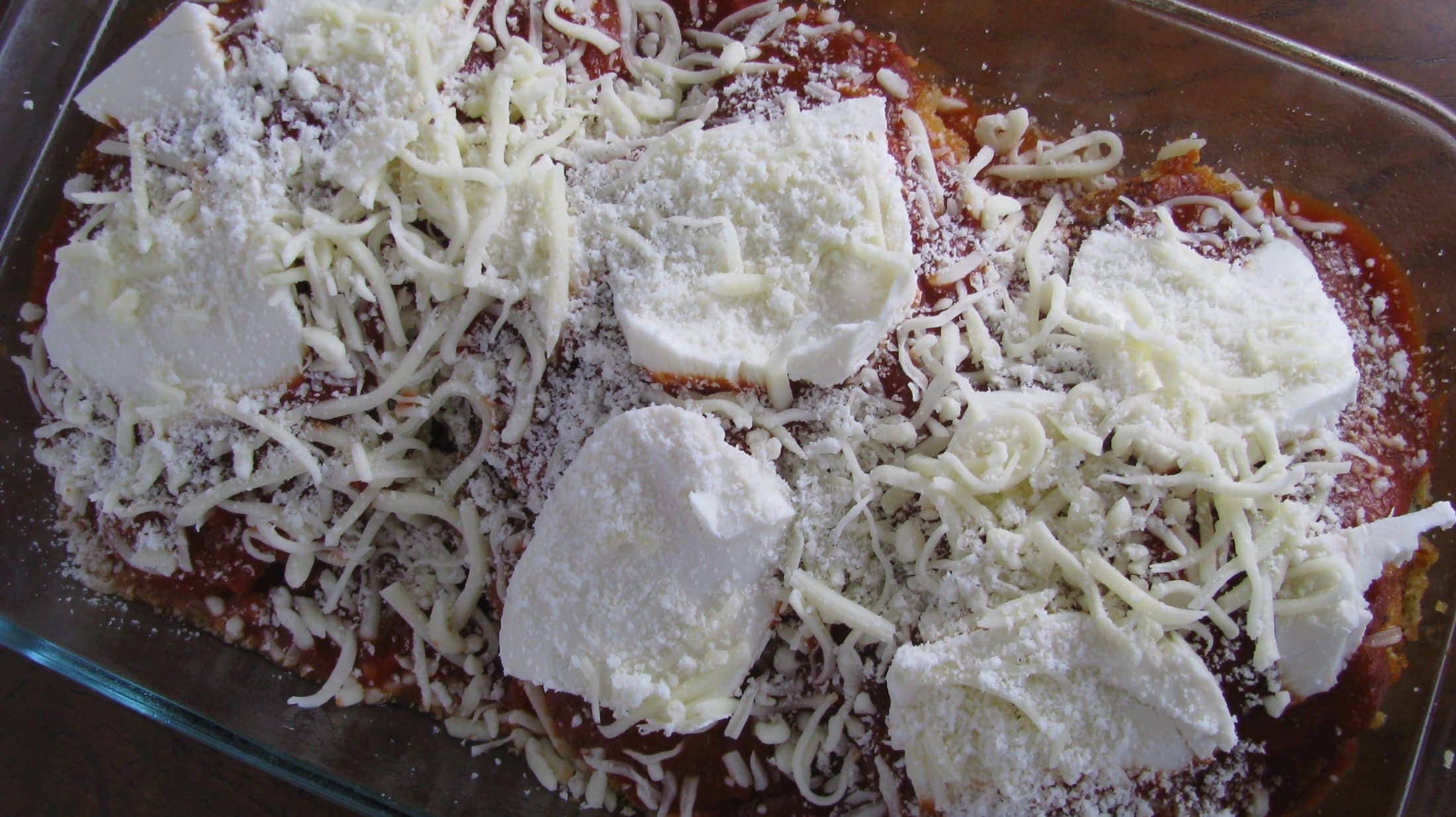 For this chicken parm, I coat the chicken in whole wheat breadcrumbs and italian seasonings. Then comes the cheese. Lots and lots of glorious cheese.
