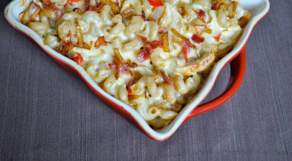 This may become a new staple in our house. The onions and peppers were caramelized but still crisp, and they added a touch of sweetness to the creamy cheese sauce. And the bacon… well you know that was just fabulous.