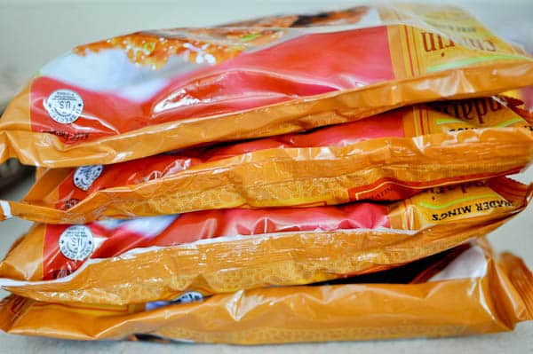 Mr. How Sweet’s favorite orange chicken. He pops this like Pringles. He claims that he wants to write to Trader Joe’s and tell them there are absolutely not seven servings in the bag, there is only one serving. Not joking – he eats the entire bag as a snack.