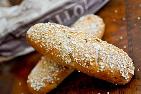 This weekend I went with 2 smaller whole grain loaves as opposed to the giant baguette. Thanks for all your suggestions about freezing the extras – I never even thought of that, though I do freeze other breads.