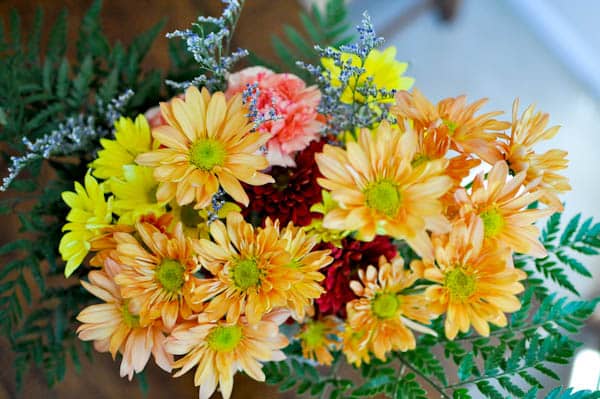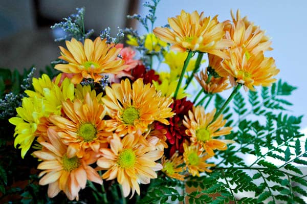 As I was putting away groceries and uploading photos, Mr. How Sweet walked in with this autumn bouquet!