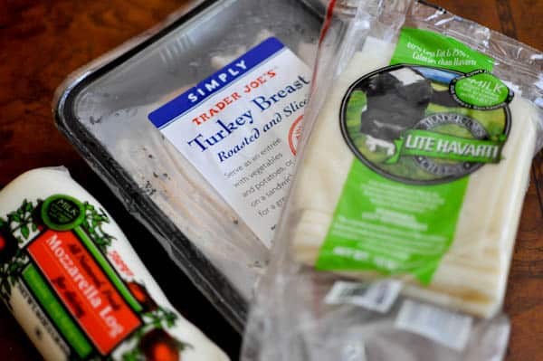 Fresh mozzarella, lite harvarti and roasted turkey.