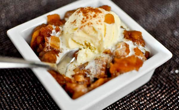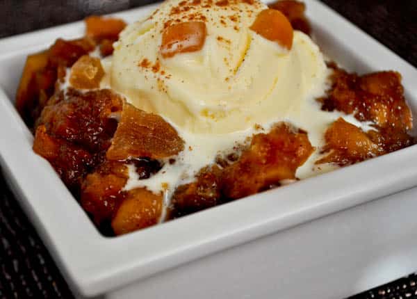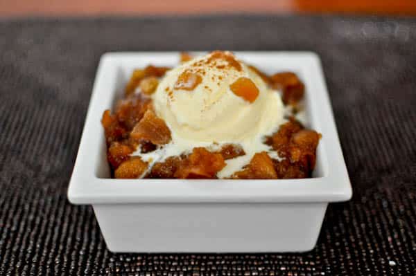 I was reeled in with the idea of ice cream on top, though I knew that it would be too rich to eat as a side dish with a meal. It reminded me of an apple crisp without the crisp – but even better. Hence the “dessert.”