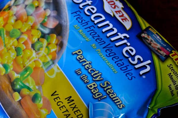 4. Throw in a veggie. Usually, this is of the frozen variety that can be made in minutes.