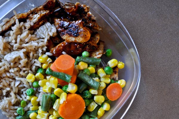I also do the same thing! But, I should own stock in frozen vegetables–my husband can consume at least a pound a day, I swear. I love and use my slow cooker, rice cooker and the microwave (meat, starch, veg) every week to make large quantities of man lunches. (One of his coworkers is always envious and sometimes I send extras…!)