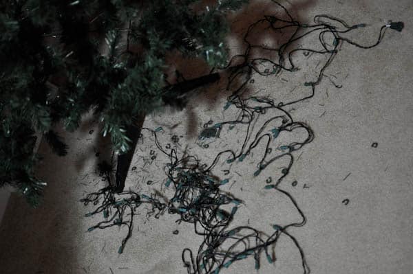 Earlier this morning, Mr. How Sweet took the strand of lights off the pre-lit tree. The plan was to just add on another strand that we had. Luckily, we have hundreds since we still have a whole other tree to decorate that is not pre-lit. Well, the lights wouldn’t plug into each other, which is a major disaster since the burnt out strand was in the middle of the tree.