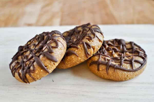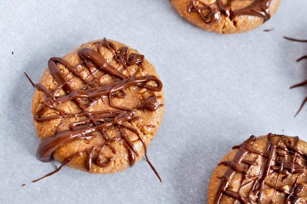 Melt chocolate in a double boiler and drizzle over cookies. Refrigerate for at least 30 minutes before serving.