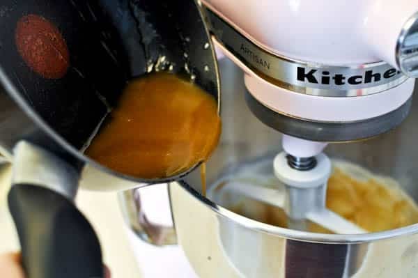- Melt butter in a small saucepan over medium heat. Add brown sugar and whisk until sugar dissolves and mixture starts to bubble. Set aside to cool, and whisk in vanilla.
