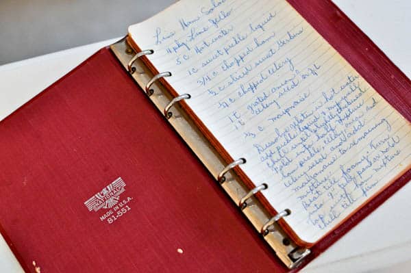Yesterday I broke out my grandma’s little red recipe book in search for her crab cake recipe.