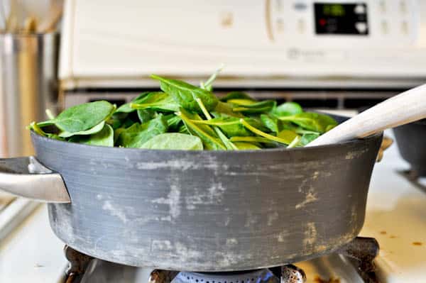 And I figured I’d better use that spinach instead of just leaving it to rot in the crisper drawer. Or else I’d feel the wrath of Mr. How Sweet.