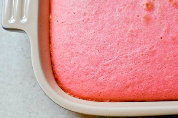 1 box Duncan Hines strawberry cake mix, prepared and baked