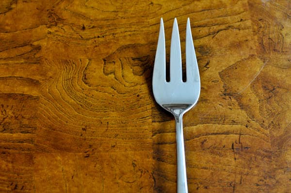 And… I had to eat it with this giant three-prong serving fork. It’s literally bigger than my forearm.