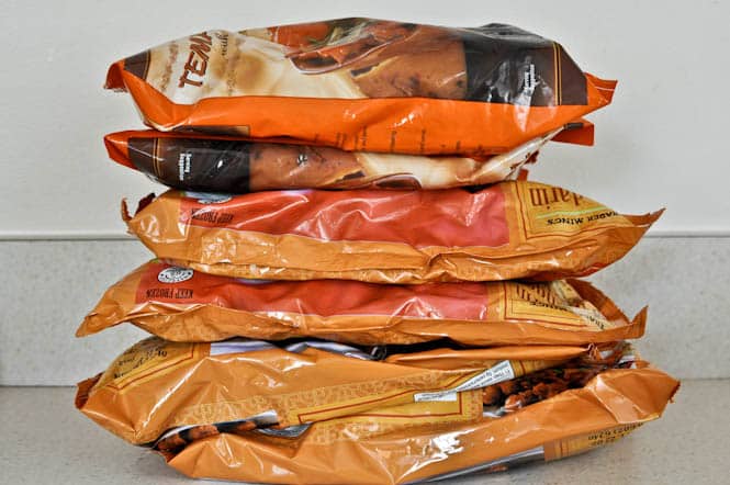 According to Mr. How Sweet, probably not. There is some sweet and sour chicken up there too. One bag equals one meal for him. If I am not home/don’t cook, it’s either a bag of this or a frozen Laura’s lean beef burger.