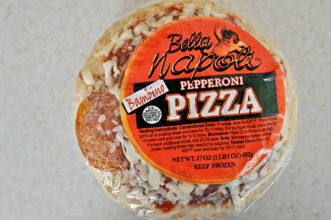 Some people eat apples for snacks. He needs an apple, a banana, and some form of meal as a snack. These little pizzas have less than 300 calories and 12 grams of protein, which he will tell me is not nearly enough… but I think they’ll work.