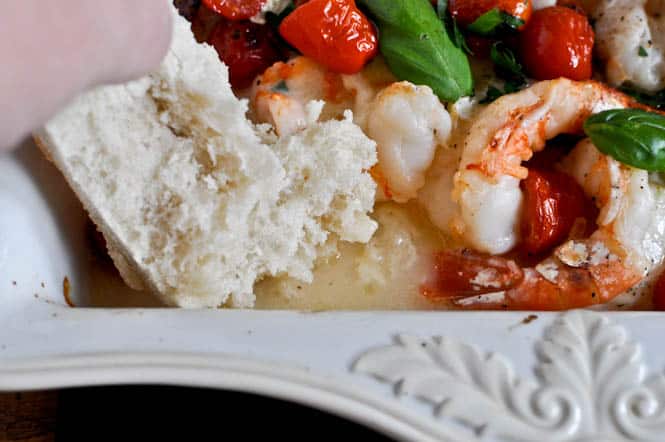 And the most important part of all… thickly sliced, crusty bread for dipping. Because you ate all the good stuff first, the healthy things like the shrimp and all those vegetables, dipping bread in a garlic butter wine sauce is the way a meal must be finished off. I know! I jumped for joy too. That was all the exercise I needed.