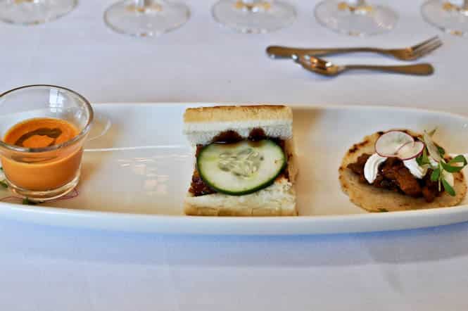 …smoked fennel and tomato soup + a sweet tea-brined pork belly slider + a baby taco which I will remember the name of five minutes after I publish this post…