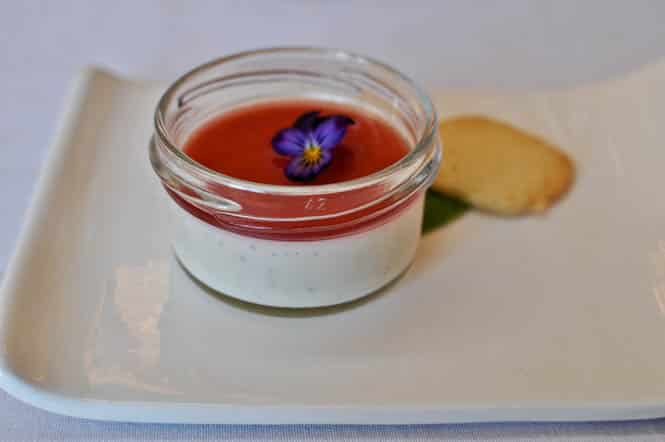 …and with the dessert wines, a vanilla bean panna cotta with strawberry gelee…