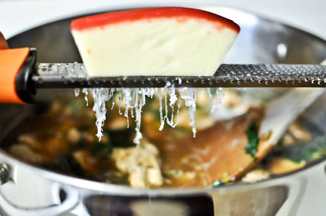 I wanted to let you know that I made this except changed alot of things—I subtracted the leeks and mushrooms, added a cup of cooked wild rice, substituted the cannenelli beans with pinto beans, and instead of fontina cheese I put in about 3 tablespoons of gorgonzala cheese. Maybe you should try it that way! It was reeeeaally good. My husband said it was the best soup he’d ever tasted, so I made it again for a group of people who gobbled it up and gave lots of compliments and second helpings. Another thing I liked about it was it was so filling. I was full after one bowl and a handful of crackers, and it’s the kind of good full that lingers.