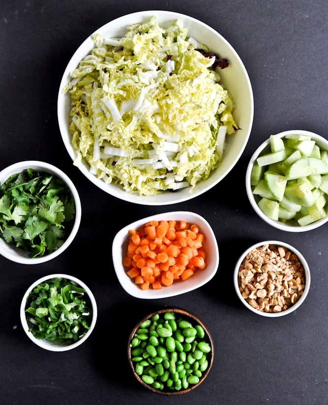 This makes a giant portion – well, for someone like me who cannot consume a large bowl of vegetables to save their life – so I suggest leaving the peanuts, chicken and dressing separate so you can easily throw the leftovers in the fridge and assemble a little non-soggy snack whenever you’d like. If you want to, you know, eat vegetables for a SNACK.