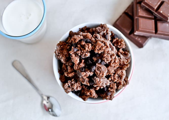 In the form of cute little chopped crumbles of super creamy, cocoa-y ice cream like morsels. It’s sort of like fudgesicle Dippin Dots. Easy, quick, no-bake, and my personal favorite: COLD. Perfect for those hot summer days when your face is melting off.