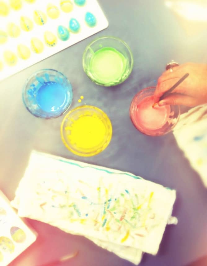 We got to paint our own chocolates and put them in little egg molds. In true I-love-the-90s-and-all-things-glitter-pink-and-sparkly fashion, I painted different colored hearts on my eggs. Don’t even tell me you’re surprised.