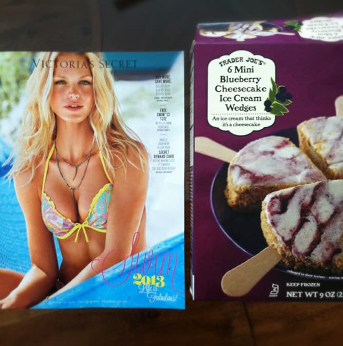 I love the VS catalog next to the TJs frozen cheesecakes. Lol