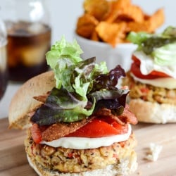 Oh and there is still bacon, obviously. This was actually my first time topping a non-beef/poultry burger with bacon and it felt SO GOOD. Whyyyyyy haven’t I done that before? You don’t have to top yours with bacon but I’d then be forced to ask – how are we friends? It’s up to you.