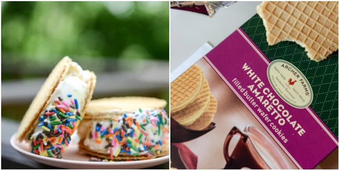 These flipping cookies. Please tell me you’ve tried them? White chocolate amaretto wafers – they practically melt in your mouth. This was my favorite product out of everything I bought and by far the most popular. We all went a little crazy. I stuffed the insides with some plain vanilla ice cream and rolled about a third of each sandwich in sprinkles. Just when I thought the cookies couldn’t get any better, they became covered with melted ice cream. Goodness.