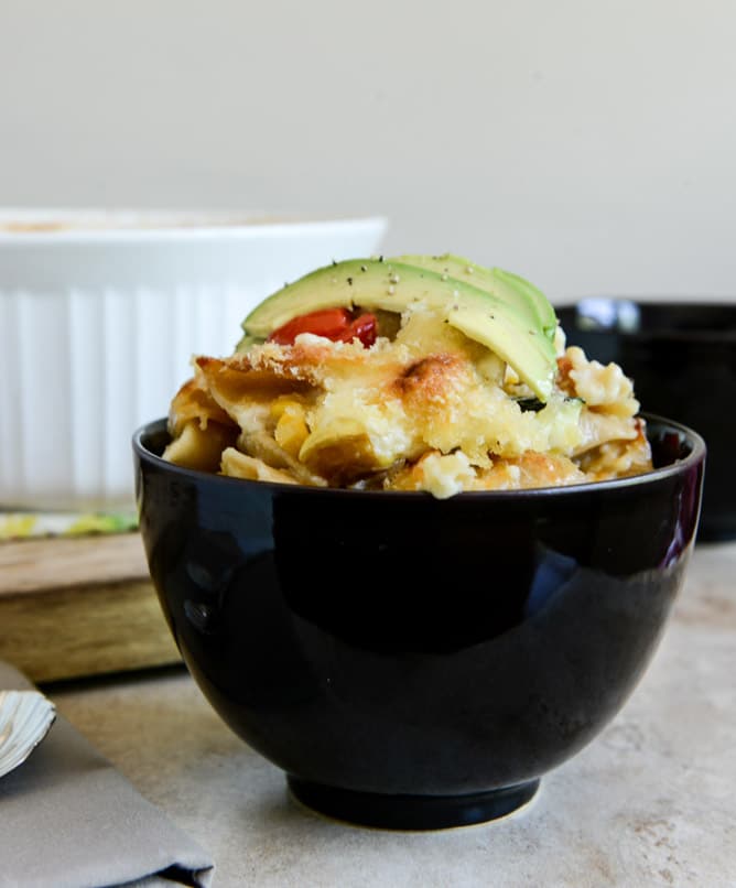 Here’s the deal: if you’re going to ask me if it is really imperative that you roast the veggies? The answer is yes. Heck, grill them if you want. Roast them ahead of time. Just get that flavor. This dish was inspired by a frittata with queso that I had at the aviary brunch a few weeks ago. I don’t even like fritattas and I can’t stop thinking about it. I mean, we are talking about a fritatta, not only with creamy queso cheese, but also with roasted vegetables like corn. It was to die for. I’m trying to vehemently to recreate that fritatta recipe for the book right now in the last hour, after I finished the recipes months ago. THAT’s how much I loved it.
