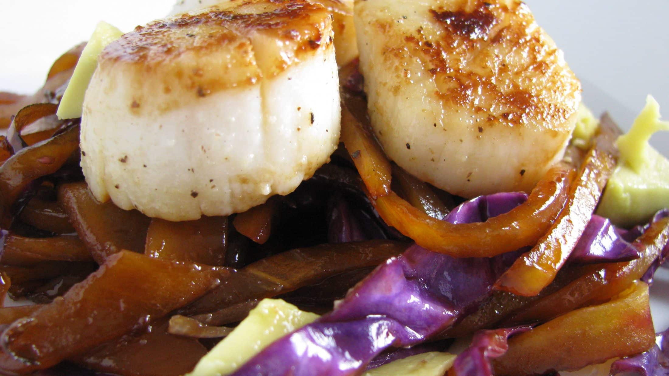 Top mango slaw with scallops. Add rice or pasta on the side.