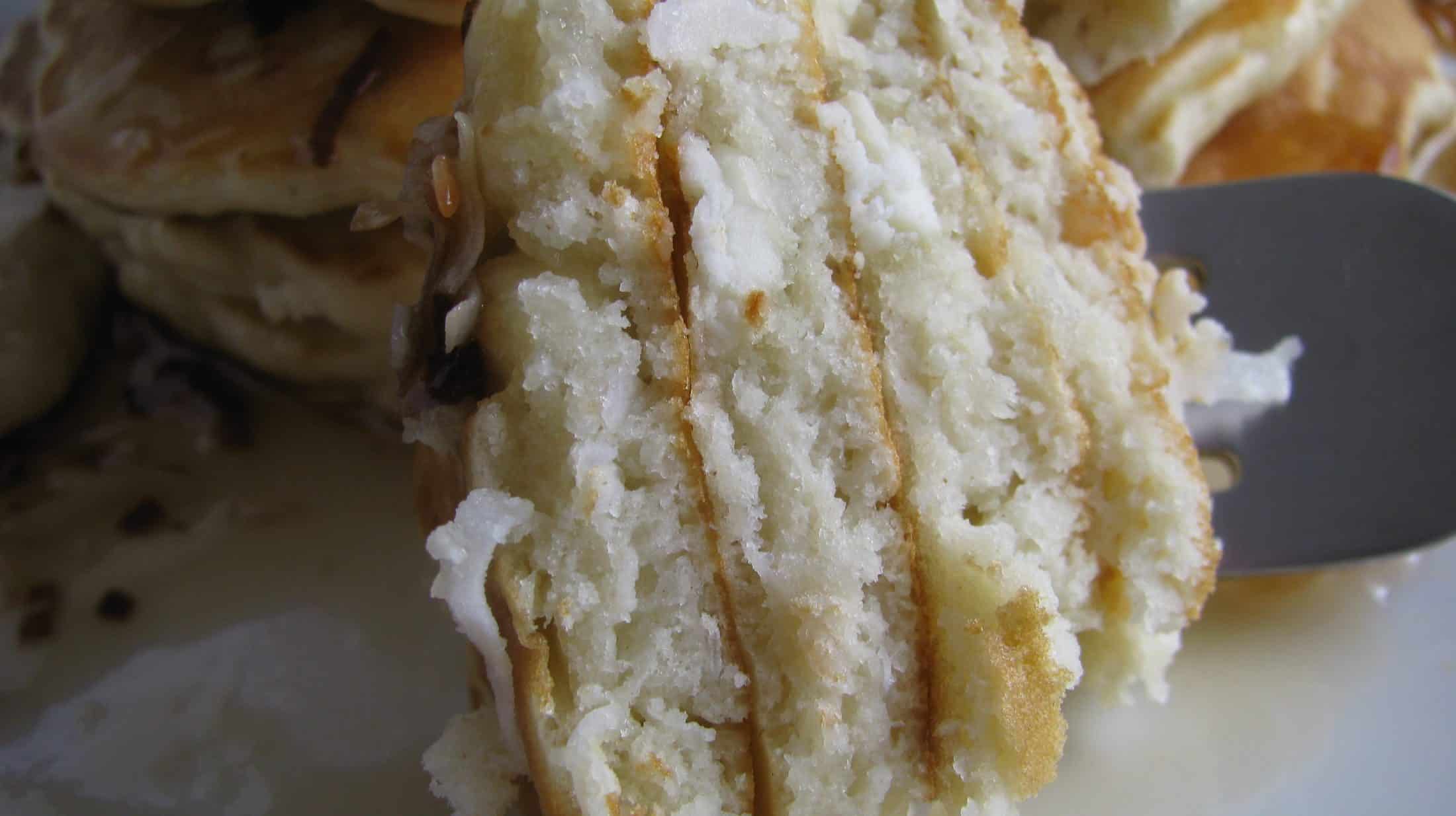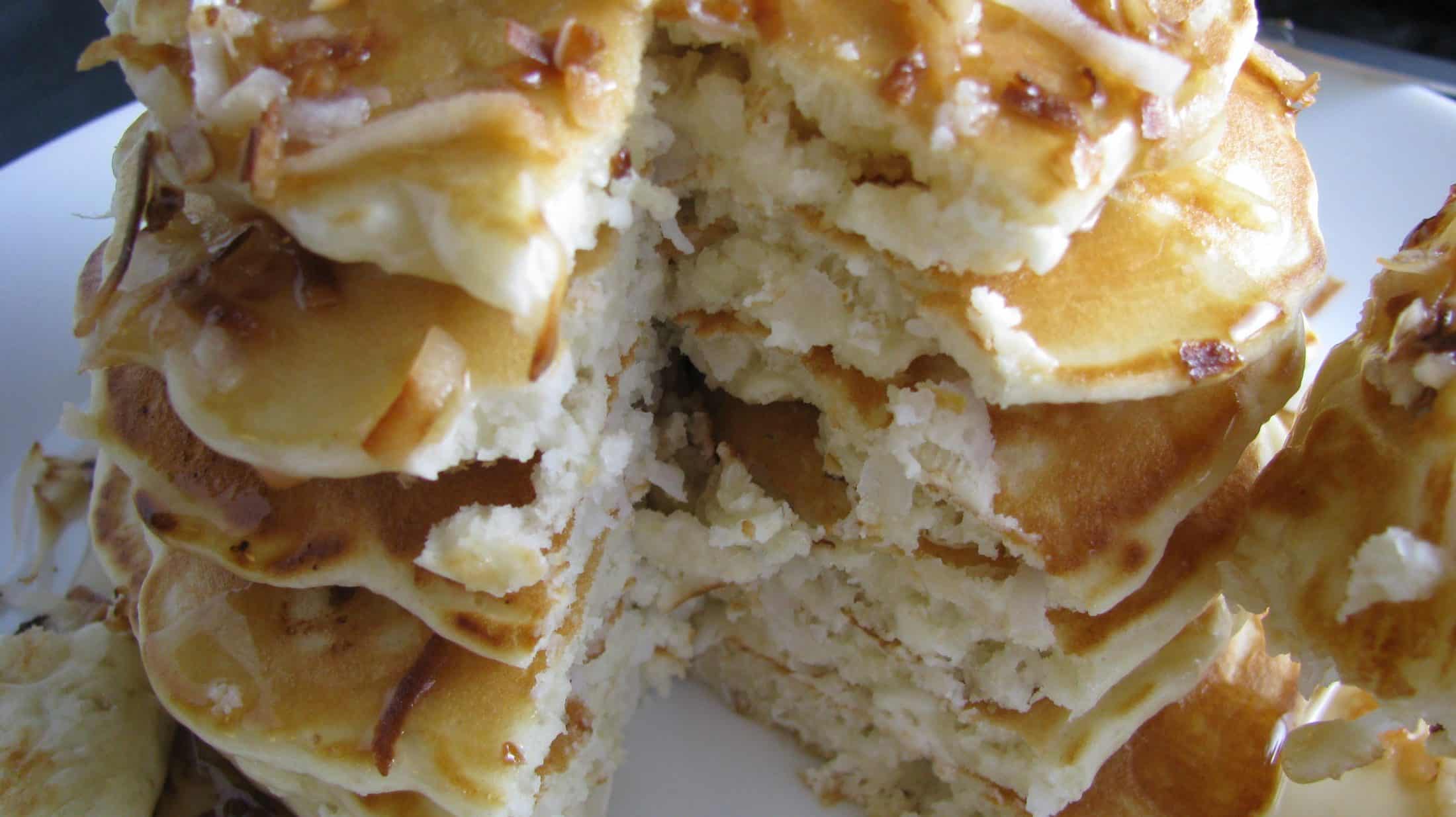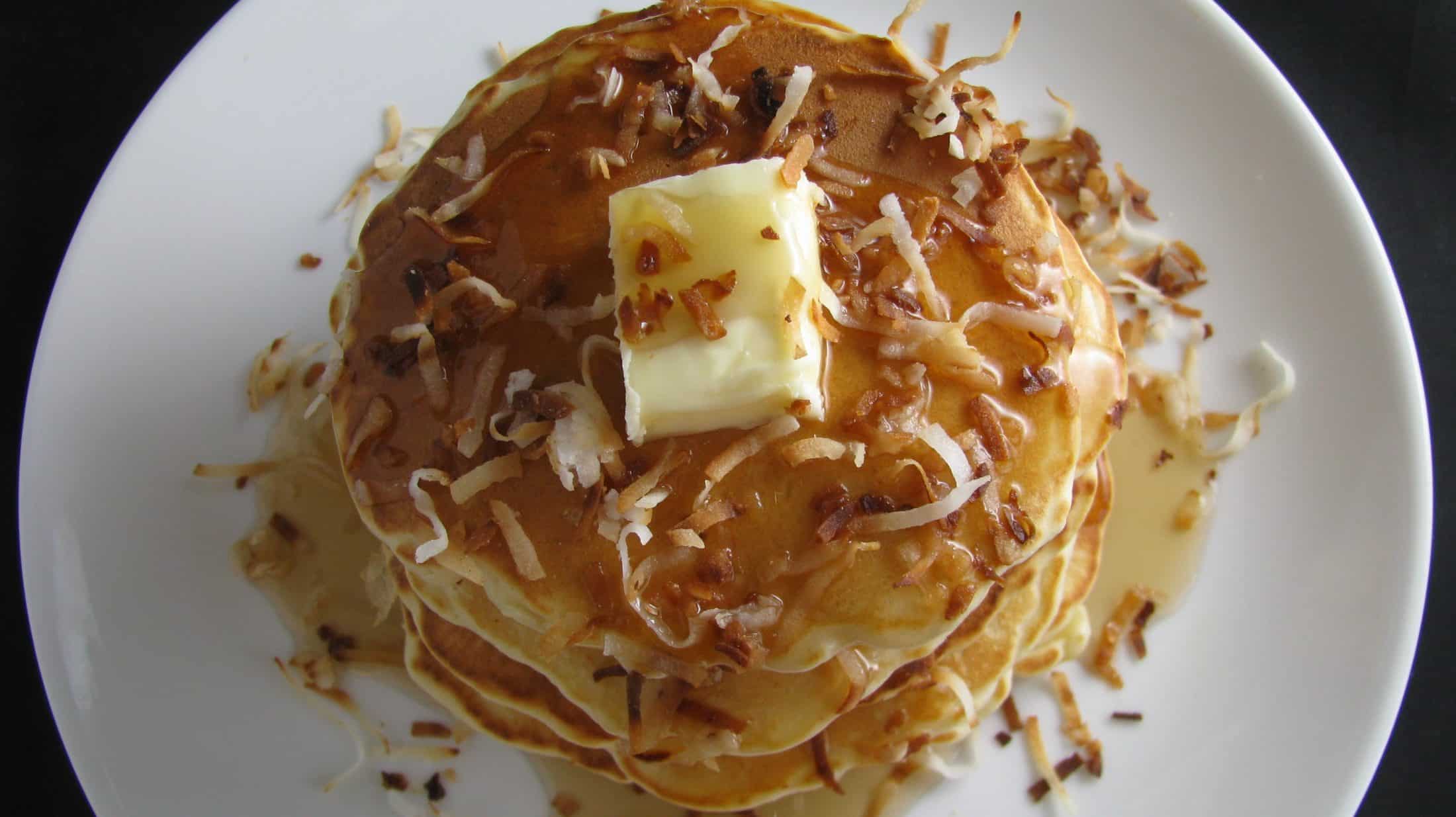 This is basically my husband’s worst nightmare since he hates coconut. But even he took one look at these pancakes and said ‘Wow! Those look really good!’