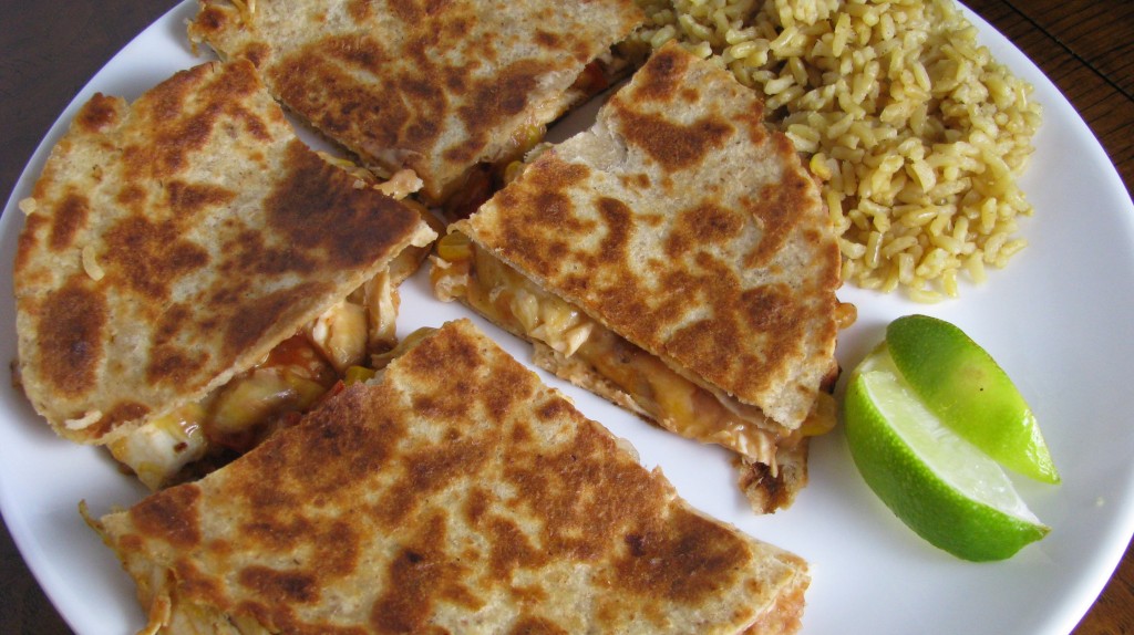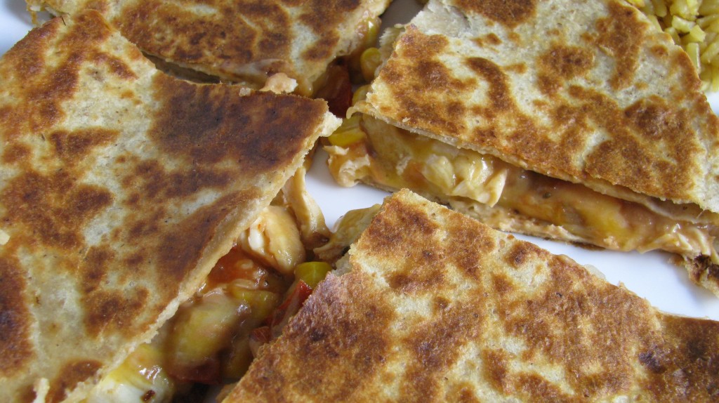 Chicken quesadillas have become one of our staple meals now. Well, one of my staple meals for the time being, while my husband is still participating in the ‘stache off.