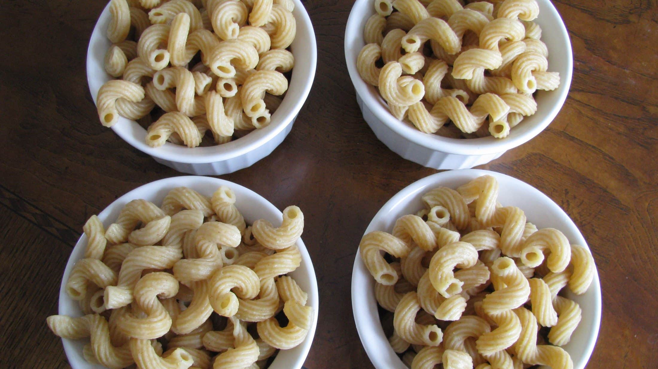 Separate cooked pasta into 4 ramekins.