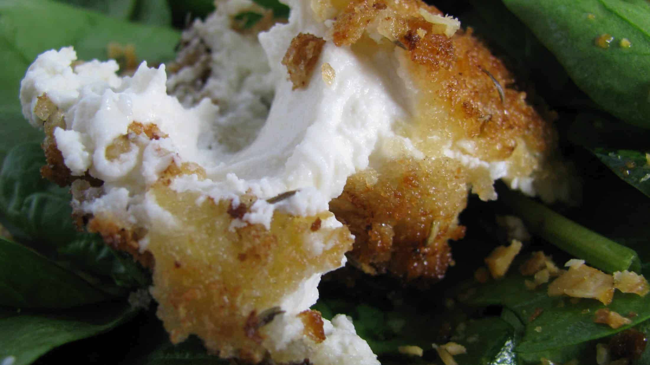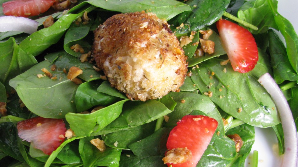 Warm Herb-Crusted Goat Cheese Spinach Salad