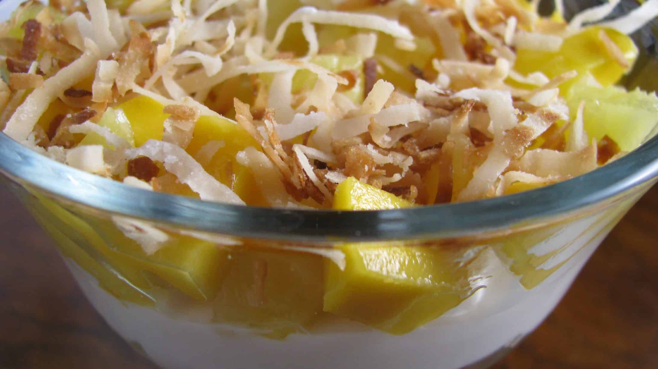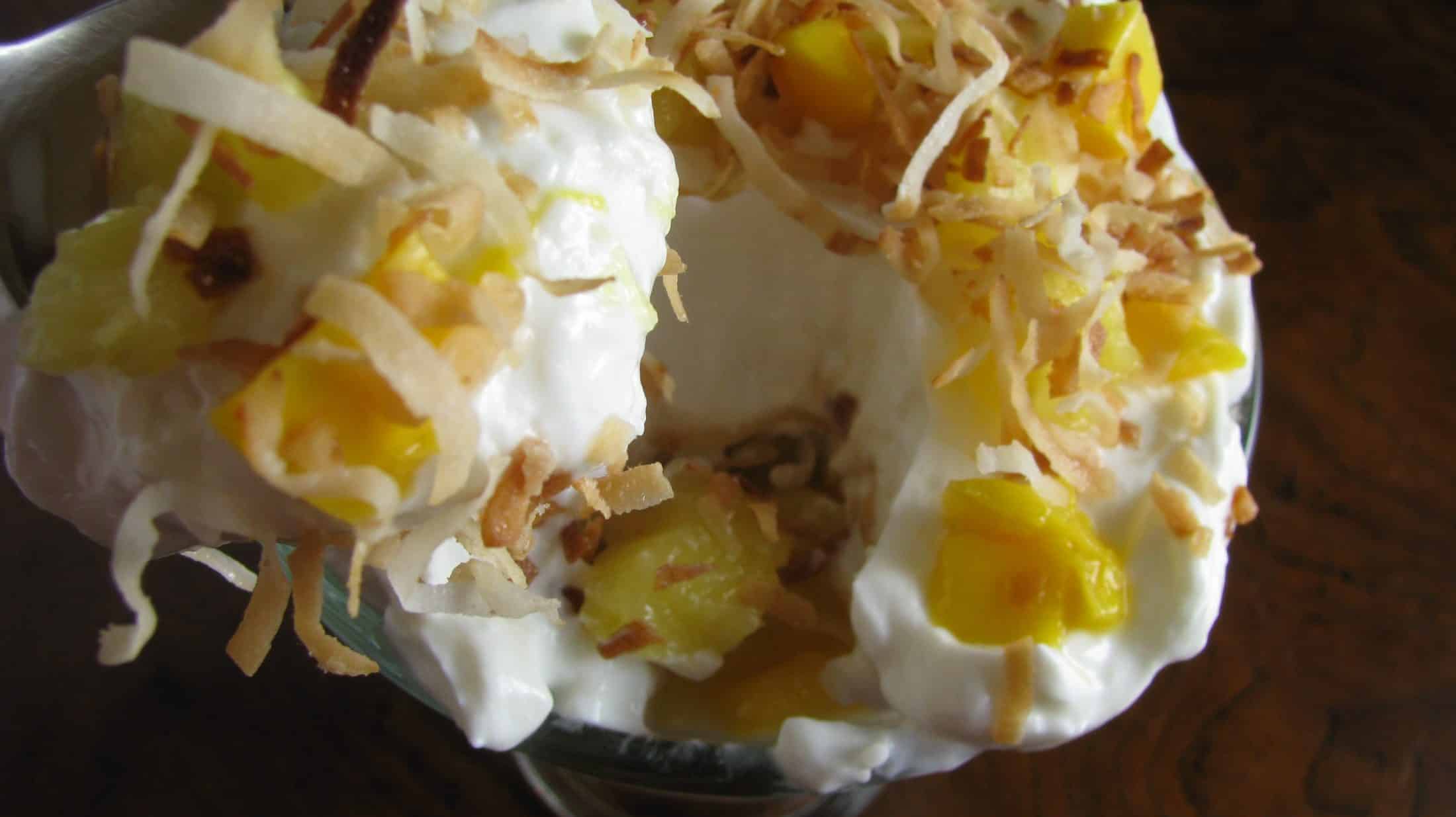 Begin with a layer of fruit and coconut, and add yogurt on top. Repeat as many times as you’d like for as many layers as you’d like. Top with more fruit and coconut.