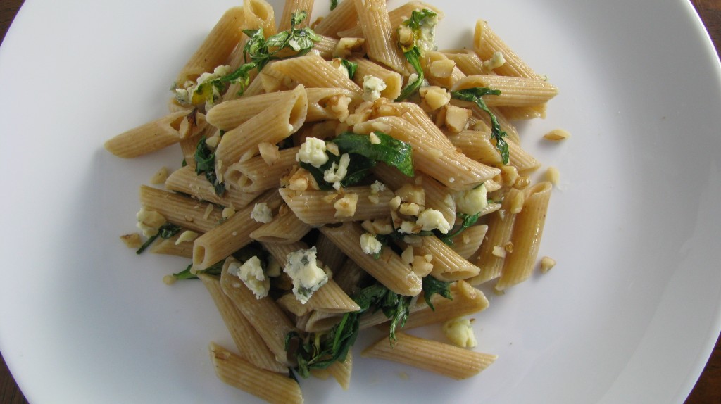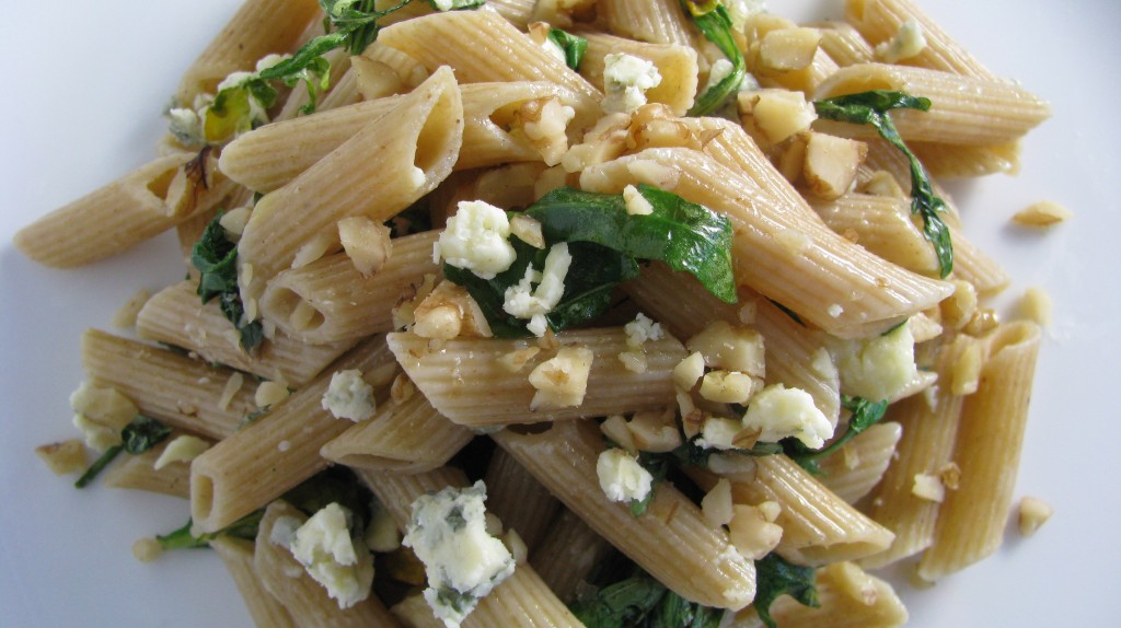 Whole Wheat Pasta with Arugula, Gorgonzola, and Walnuts.