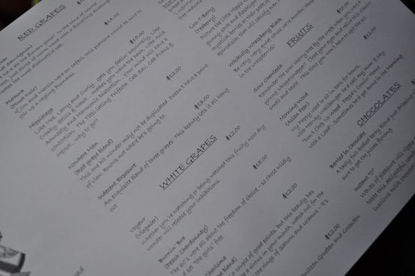 Not because the wine was good, but because after you’ve sipped the equivalent to 2 bottles of wine, names like “morning wood,” “instant o” and “indecent exposure” are pretty funny.