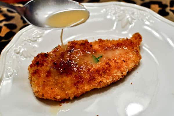 No, you dope. It isn’t gravy. Why would I plate some beautiful chicken and lemon slices only to pour gravy on top of it? And really, when did you ever see gravy and lemon together?!