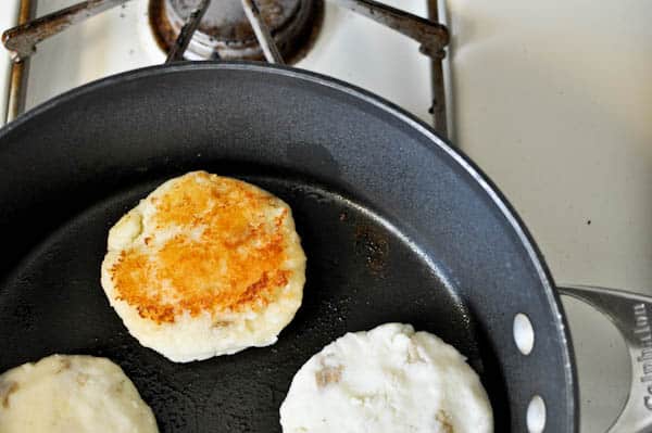 Yesterday I asked her how she made them. I was fairly certain she didn’t just form plain old mashed potatoes into a patty.