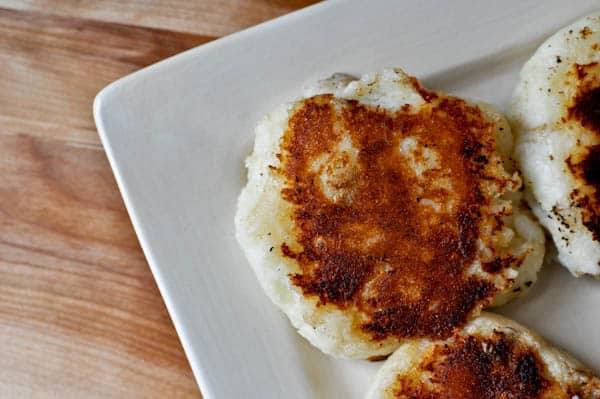 There are a few meals my mom made that screamed “comfort food”. Certain meals that I can remember sitting down at the table to eat on cold, crisp nights. One of them was pot roast with egg noodles, mashed potatoes and gravy. Another was egg sandwiches with fried, chipped ham. And one of my favorites were these mashed potato pancakes.