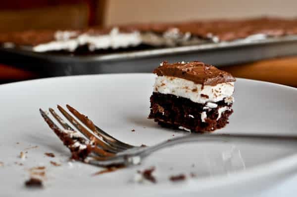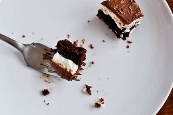 This cake is evil. My husband says so too. Once you start eating it, you can’t stop. It doesn’t look like anything spectacular, but it is. Especially when it is chilled.