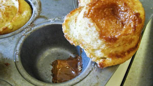 During my muffin binge, I attempted to stuff a muffin with a caramel square.