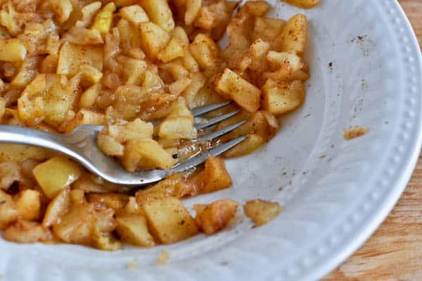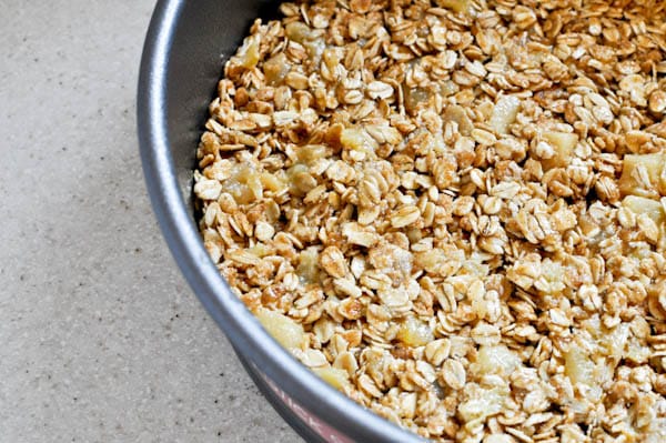 These bars also come with a makeshift applesauce. You can try subbing regular applesauce, but I was fresh out. So I simply heated some apples with cinnamon until they were soft, then smashed them into itty bitty pieces. It was fun. I like mashing things.