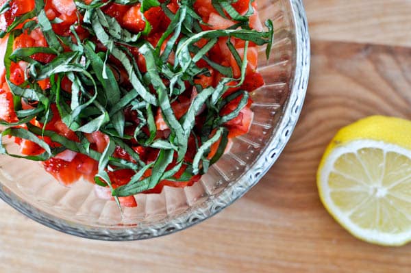 I love the strawberries and basil separately, but right now I can’t get over how delicious they are when combined. They were destined for salsa.