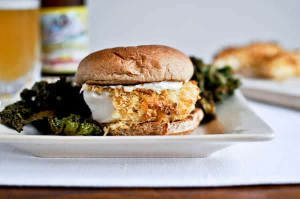 salt and vinegar chip crusted fish sandwich I howsweeteats.com